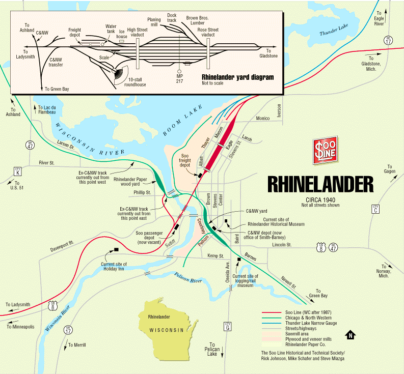 Soo Line Railroad in Rhinelander, Wisconsin, ca. 1940