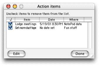 When items are set as action items, NotePod can serve as a "To-do" list.