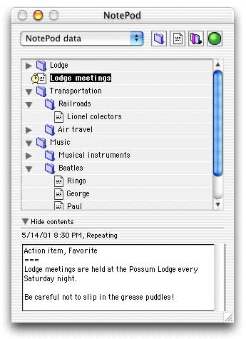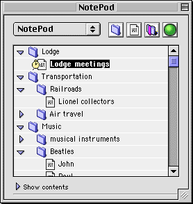 Click the "Show contents" disclosure triangle to show the contents of the selected note, as well as attributes such as reminder and time settings.